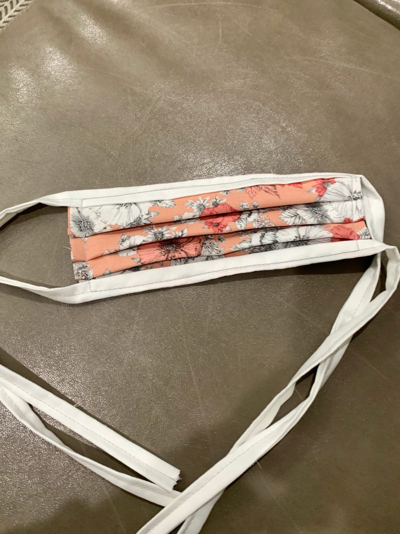 Peach and White Floral Face Mask